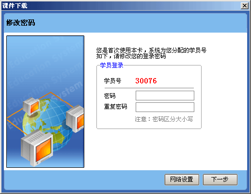 学员号,然后在密码输入框里输入密码,请牢记学员号和密码。凭学员号和密码可以登录本地训练系统和网上的学员空间(www.tangtech.com.cn),点击“下一步”按钮;