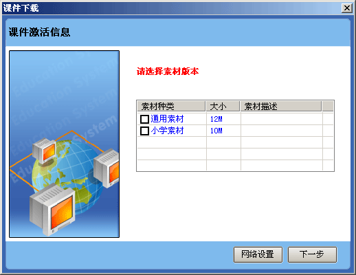 7. 课件激活。综合能力测试完成后,系统会显示已经装配好的、且激活的课件,点击“下一步”按钮;