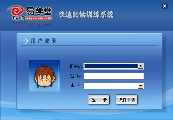2. 单击桌面上的“易学堂快速阅读训练系统”快捷图标或者逐步点击“开始”-“程序”-“易学堂快速阅读训练系统X” -“易学堂快速阅读训练系统”启动易学堂快速阅读系统;启动后界面如下图所示: